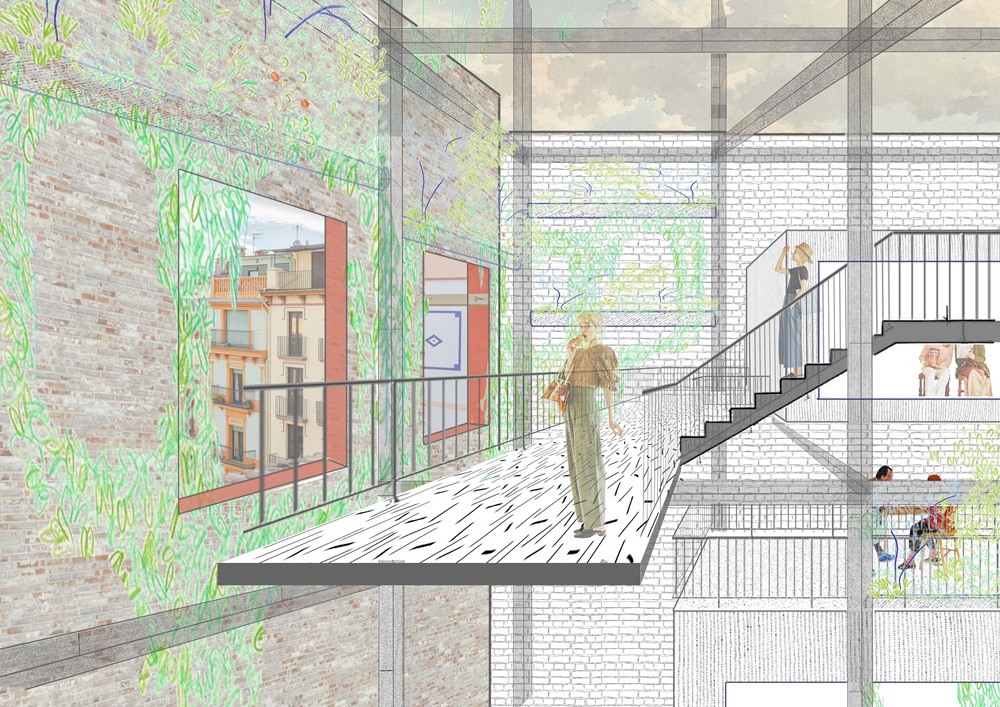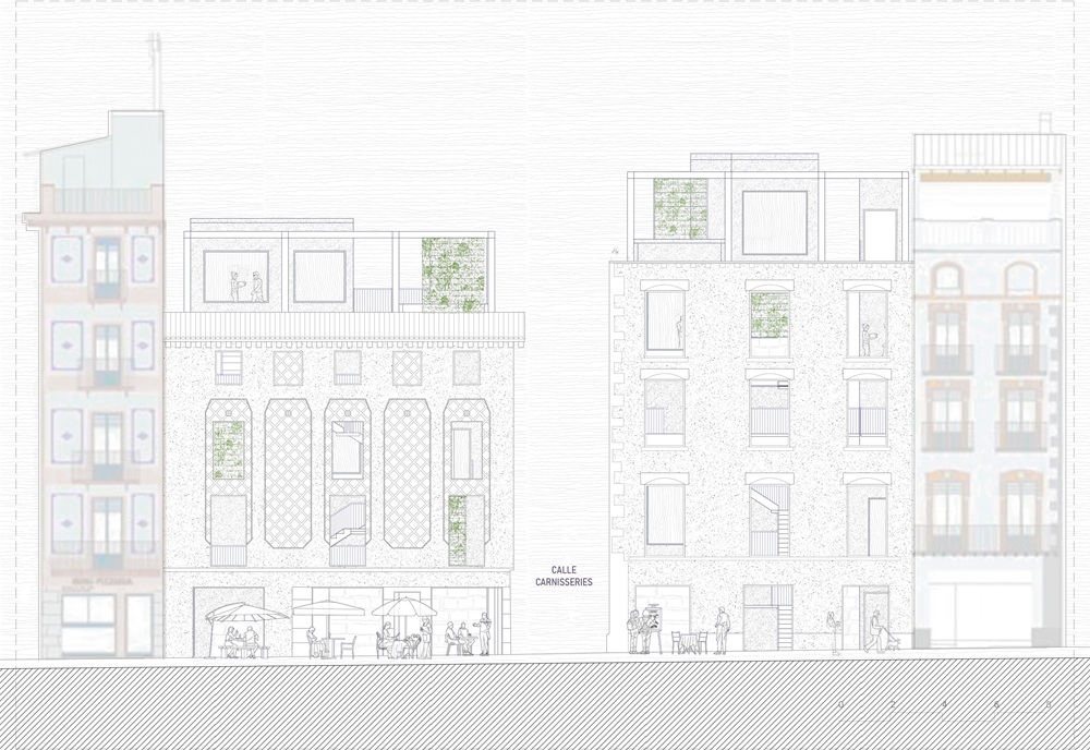 De este modo, el proyecto propone una nueva relación entre lo público y lo privado: la ciudad entra en los edificios y los edificios salen hacia la ciudad. La calle de las Carnisseries deja de ser una simple vía de paso para convertirse en un nexo activo entre ambos inmuebles y la Plaza Mayor.