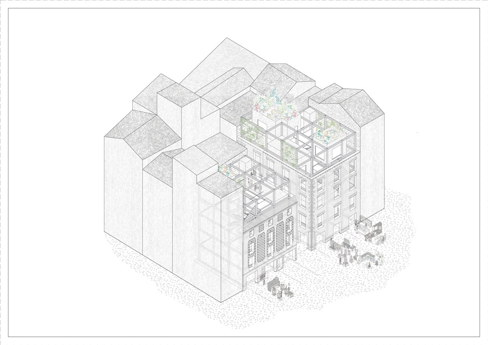 El proyecto se sitúa en la Plaza Mayor de Olot, principal espacio comercial y de encuentro del centro histórico, tradicionalmente vinculado al mercado, al intercambio y a la vida cotidiana de la ciudad. Parte de la observación de un tejido urbano muy densificado, con una notable escasez de espacios públicos y de reunión y una fuerte presencia de fachadas históricas, lo que limita la capacidad del centro para acoger nuevas actividades sociales, culturales y productivas.