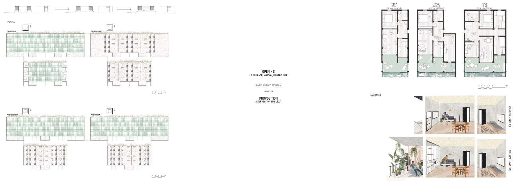 Durante mi Erasmus en Montpellier, desarrollé el proyecto Open-S en el barrio de La Paillade / Mosson, centrado en la rehabilitación de un edificio de viviendas existente. El contexto está marcado por un fuerte programa de renovación urbana en la Mosson.
