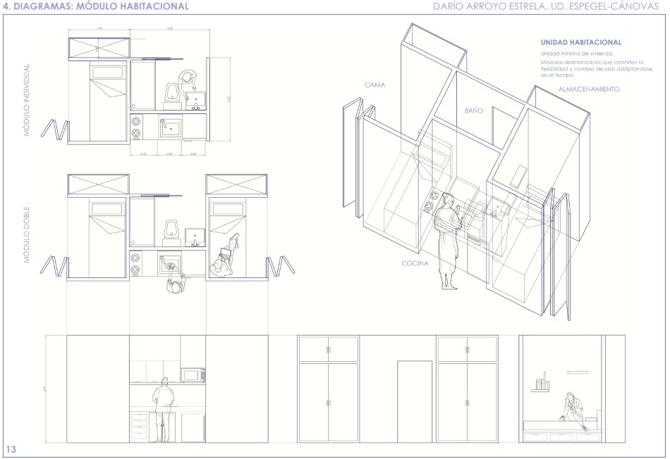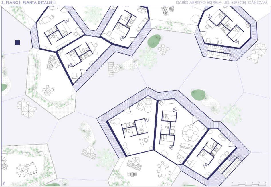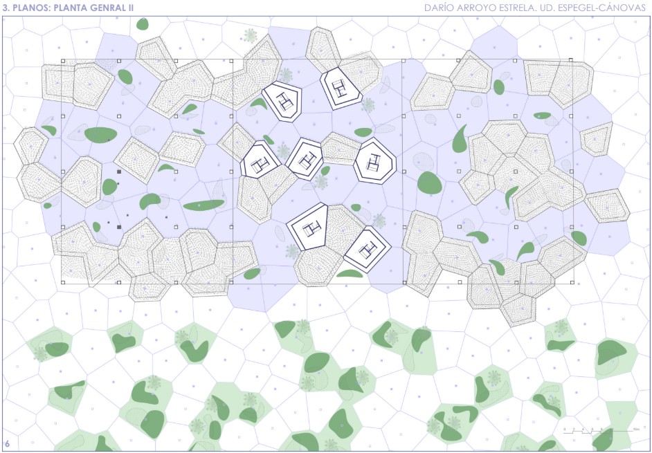El proyecto Voronoi surgió como un experimento de intervención en unas naves industriales abandonadas, combinando estrategias de diseño paisajístico y arquitectónico. Se trata de una propuesta para viviendas de estudiantes, con habitaciones individuales y dobles, ubicada en Sevilla.