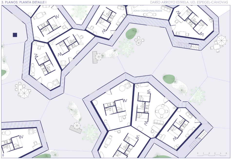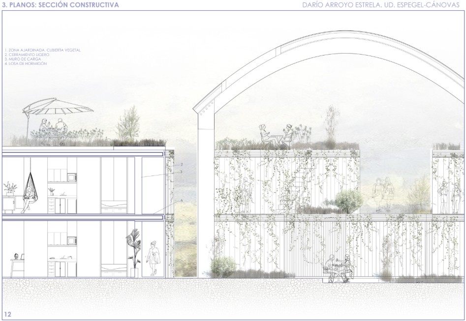 La combinación de la geometría voronoi, los jardines en altura y las galerías solares configuran un entorno habitable que busca integrar naturaleza y arquitectura, ofreciendo calidad espacial y ambiental en un contexto de reutilización urbana.